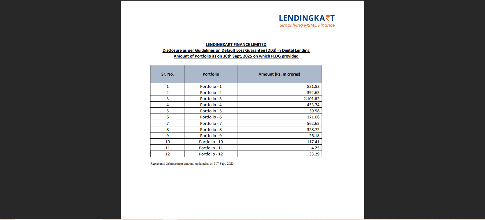 Disclosure on Default Loss Guarantee (DLG) in Digital Lending-Sept 25