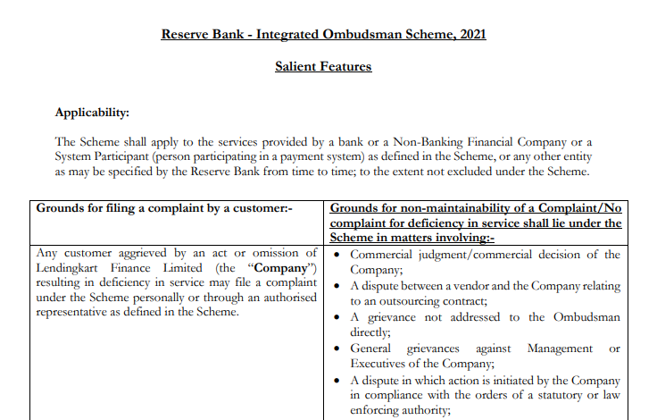 For the Salient features of Reserve Bank – Integrated Ombudsman Scheme, 2021 and details of Principal Nodal Officer, please click here